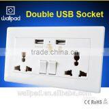 New Arrival Wallpad PC110~250V Electrical Double Universal Wall Socket With Switch Usb Charger Port USB Power Wall Light Socket