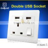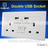 Wholsalers Wallpad 110~250V Wall UK Switch and Socket Usb Wall Charger 2100ma USB Power Wall Light Socket With USB Port
