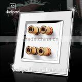 China Supplier 2015 Wallpad White Waterproof Acrylic Glass 110~250V EU UK Electric Double 4 Pin Male Audio Wall Socket Jack