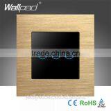 Hot Sales Wallpad 110-250V Electrical EU UK 2 Gangs Touch Gold Aluminium Frame Tempered Glass Touch Sensor Button Switch
