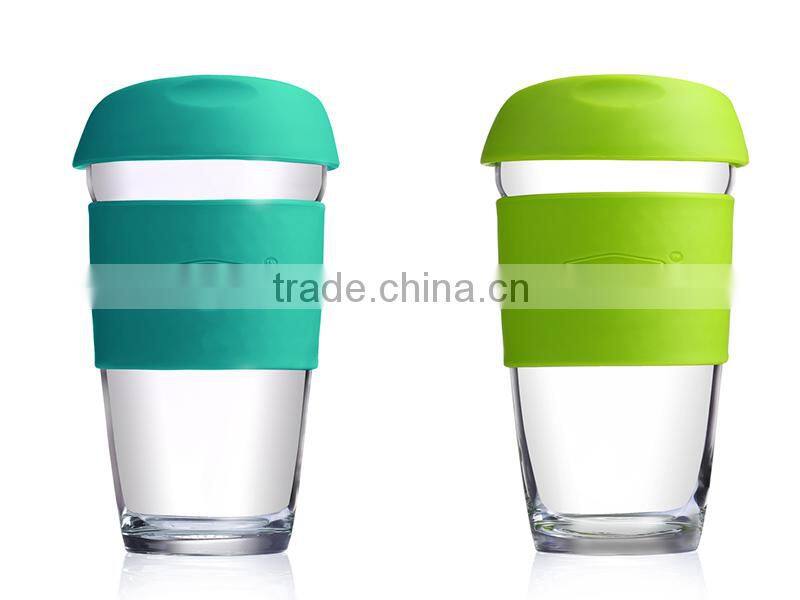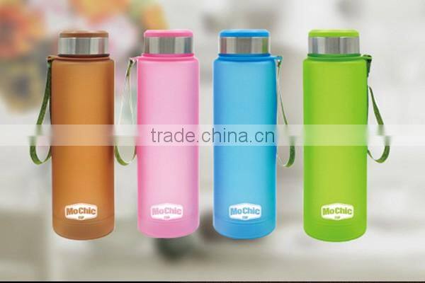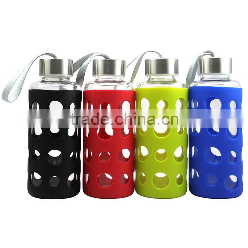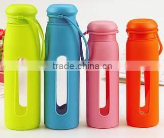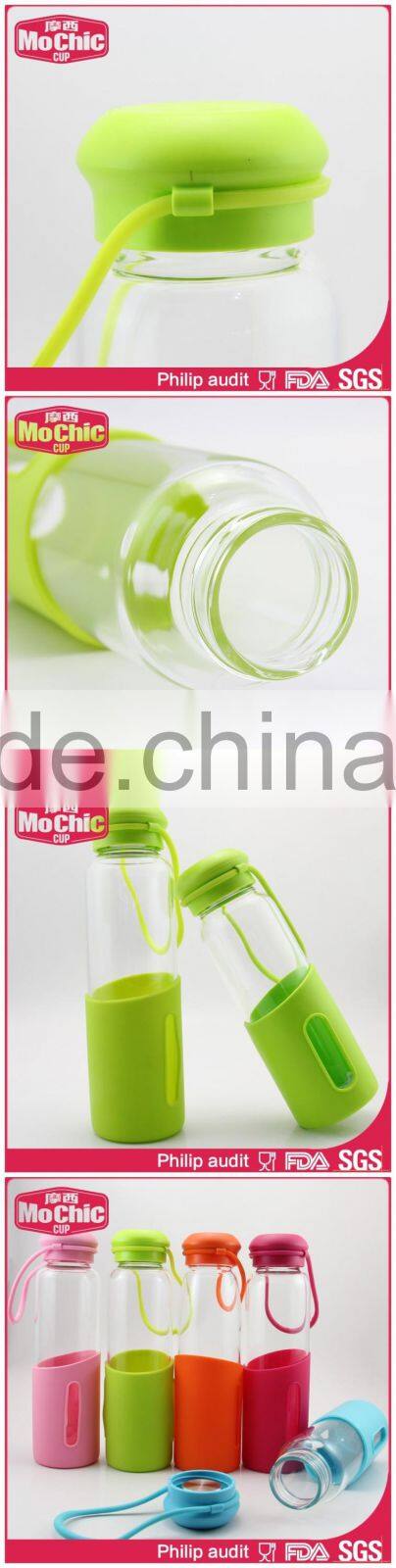 Mochic 500mlcustom sport borosilicate heat resistant bpa free glass water bottle / glassware drink bottle with colorful silicone