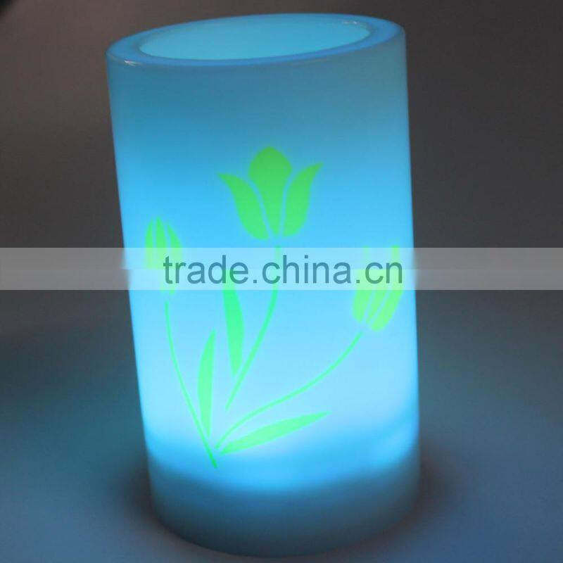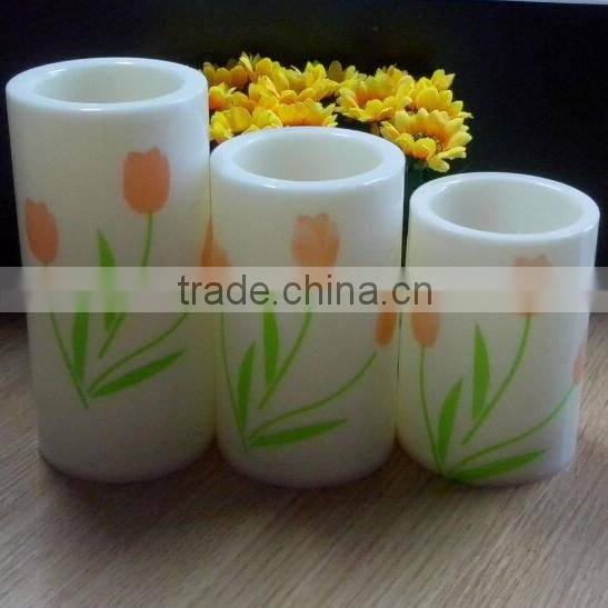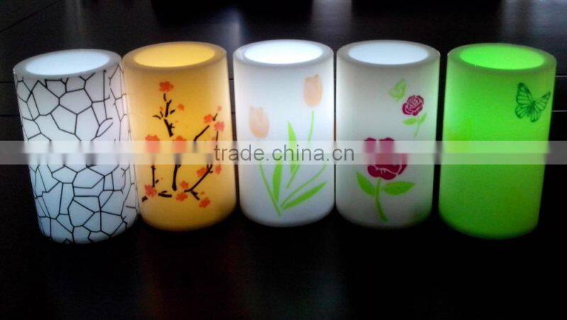 Plastic Beautiful Printing Pillar Flameless Decorative Led Candles