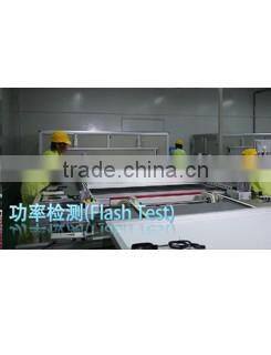 Modules factory was established in 2010 ,covers 30,000 square meters, who has reached a capacity of 150MW/year ,and supposing to 200MW/Year in 2016. Our annual export volume up to 300MW.Modern production equipment, the most advanced solar cell production line ,to ensure the quality of the product qualification rate reached 99.99%.
