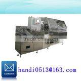 It is mainly composed of the following parts:master driving unit, product-transferring unit, metal gate unit, carton-transferring unit, carton-suction unit, product-push unit, coding unit, carton-pressing unit, glue sprayer (carton flap folding unit), discharge unit, electric control unit and pneumatic unit. Under coordinated work of the above parts, the product packing procedure is finished perfectly.
