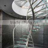 Exclusice Ultra Clear Glass Spiral Staircase With Stainless Steel Cental Pole