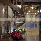 Indoor Curved Stringer Wood Steps Spiral Stair With Metal Railing