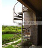 Stainless Steel Wood Used Spiral Stairs With Glass Railings