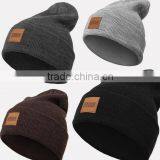 Leather Patch Winter Beanies, Beanie Hats Wholesale, Custom Knit Acrylic Beanie Quality Choice
