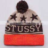 Pom Pom OEM Jacquard Pattern Beanie Hats Wholesale,Custom Knit Acrylic Beanie