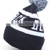 Black and White Jacquard Wholesale Free Pom Beanie/pom Pom Beanie Hats Wholesale