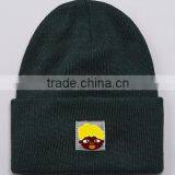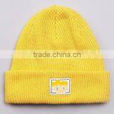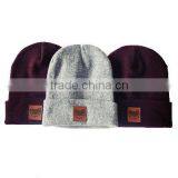 Fashion Custom Patch Beanie Hat/Acrylic Knit Leather Patch Beanie