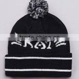 Comfortable White Letters Jacquard Winter Beanies/Customized Blank Rasta Pom Pom Beanies