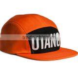High Quality Plain Orange Printed 5 Panel Cap Flat Brim Custom Logo 5 Panel Hat