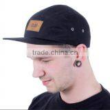 Wholesale Custom Blank 5 Panel Cap With Leather Patch/Cheap Flat Brim 5 Panel Cap