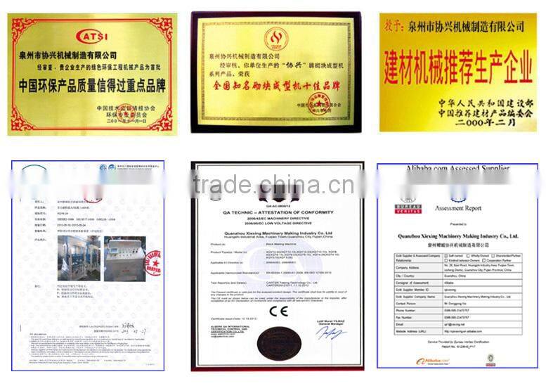 Quanzhou Xiexing Machinery Making Industry Co., Ltd. comes from China, is a specialized company, which has been in the cement products machinery industry for over ten years. Our main products are brick machines, block machines, concrete block machines, cement block machines, hollow block machines, non-burn block machines, color block machines, hydraulic block machines, pressing machines, block moulds and other more. Xiexing judges each procedure of the work by taking the market as guideline and the actual requirements as standard goal. Now, our company has already set up a more complete system in innovation, manufacturing, quality controlling and after-sales service. Scientific design, advanced product technology, complete production equipment, experienced working craftwork, strict inspection as well as the specialized group have resulted in excellent and superior products in Xiexing. Our good service support has eliminated the worry of customers. Xiexing seeks for superiority and perfection. For this goal, everybody in Xiexing is working hard!! Our hearted spirit is "Sincere collaboration, going prosperous with you"!!