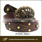 Western Mens Metal Studs Leather Belts With Golden Round Buckle