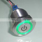 Home > Products > Metal Pushbutton Switch > Flat Round Ring Illuminated Latching Waterproof Metal Push Button Switch 12mm Engraved Power Symbol