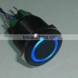 Latching Ring Illuminated Waterproof Push Button Switch L22(Dia.22mm) IP67 With Black Aluminum Body