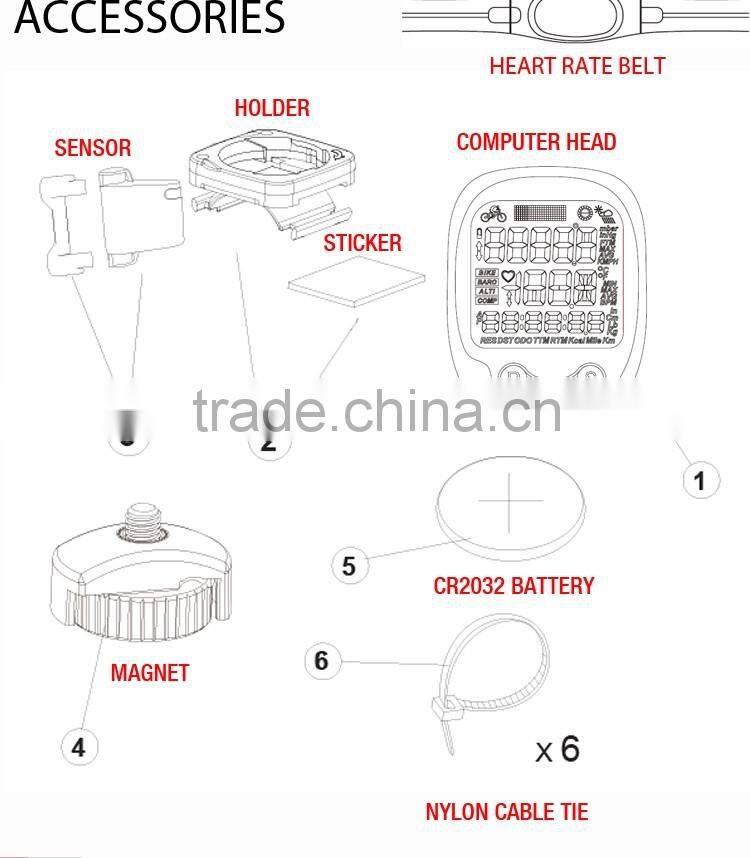 Wireless Cycle Computer With Heart Rate, Barameter, Altimeter, Company Large LCD Dispaly Waterproof