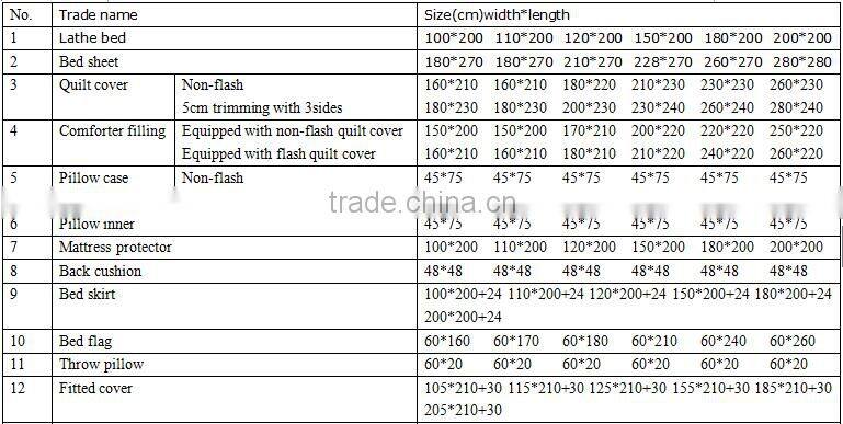 The sheet class fabric all above is all-cotton,the size is the delivery gauge.