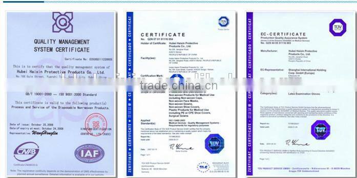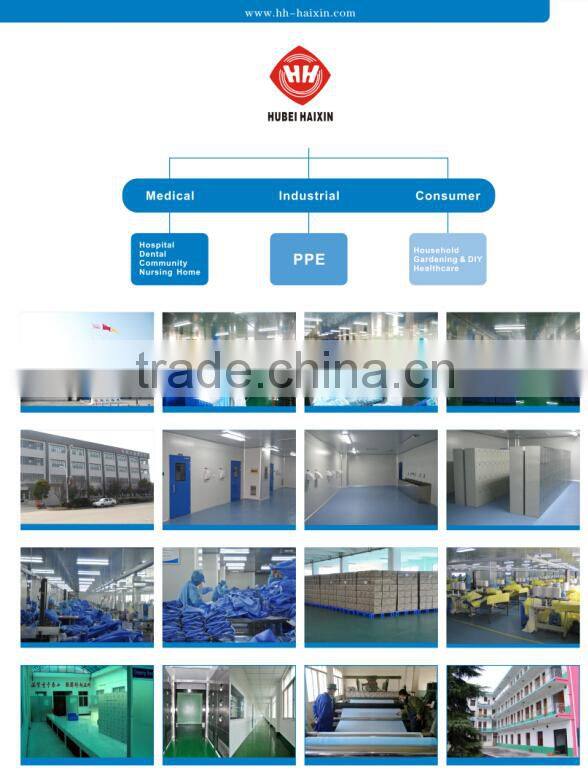 Hubei Haixin Protective Products Group Co.,Ltd (HH) founded in 1994 ,is a leading manufacturer & exporter specialized in all kinds of medical non woven disposable products and personal protective equipment.Our factory is covering a land of 30000 square meters , with more than 1000 skilled workers .Hubei Haixin has been distinguished with approved and certifications such as CE , FDA(510K), ISO9001:2000, ISO13485:2003
