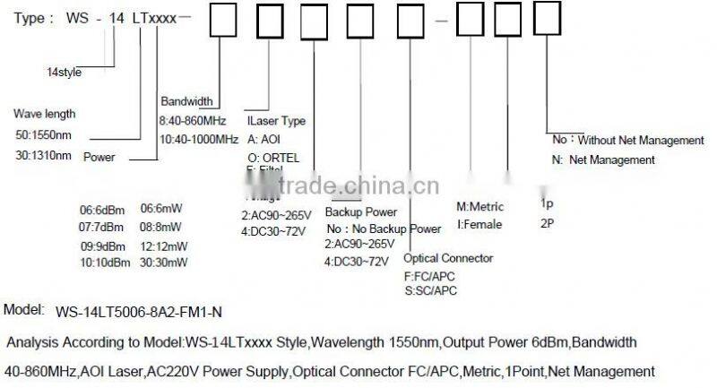 14LT50xx series 1550nm optical transmitter is mainly applied> 25 km (digital signal 35Km) distribution network