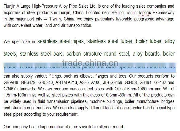1.We are Tianjin, A Large Highpressure Alloy Pipe Sales ltd which was established in 2005,located near to one of the biggest ports- Tianjin port, China.