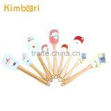 FDA/LFGB Wood Handle Printed Dfiierent Pattern Hot Sale Good Function Silicone Paint Spatula