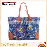 Fashion Blue Canvas With Baroque Print Handbag With PU Shoulder