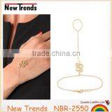New Design Gold Slave Bracelet With Finger Ring Wide Cuff With Ring
