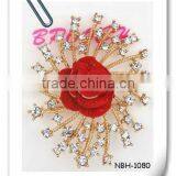 Top Sale Jewelry Flower Brooch With Clear Rhinestone