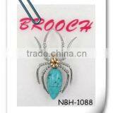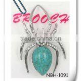 Wholesale Rhinestone Spider Brooch With Turquoise Stone