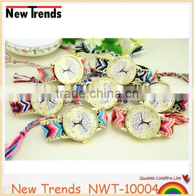 New Arival Fashion Colorful String Weaved Tree Design Quartz Lady Watch