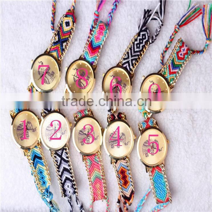 Product | Fashion national style handmade multi color woven braid women watches bracelet watches |