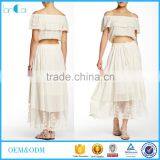 2016 Fashion Short Sleeve off Shoulder Crop Top and Long Skirt Ladies Designer Skirt Suits