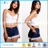 New Design Fashion Women Hotpants Crochet Trim Women Denim Shorts