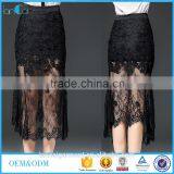2016 Latest Skirt Designs Black Lace Semi Sheer Mermaid Skirt