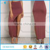 Wine Jersey Knit High Slit Maxi Latest Skirt Design Pictures