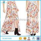 Hot Sell Flower Print Front Split Maxi Skirt Fancy Skirt Top Designs