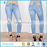 Wholesale Ladies White Summer Machine Distressed Skinny Jeans