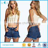 Wholesale custom women apparel denim shorts wash denim hotpants