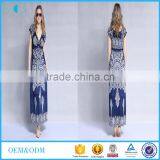 2016 African Fashion Designs Deep v Neck Printed Cap Sleeve Maxi Dresses