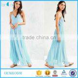 Latest Design Elegant Women Blue Waterfall Strap Chiffon Party Maxi Dress