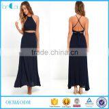 Women Clothing 2016 Fashion Navy Blue Two Piece Suit Chiffon Sexy Backless