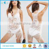 2016 Summer Ladies Transparent Dress Mesh Burn Out Fringed Beach Dress