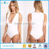 V Neck White Cream Extreme Plunge Bodysuit for Weight Loss