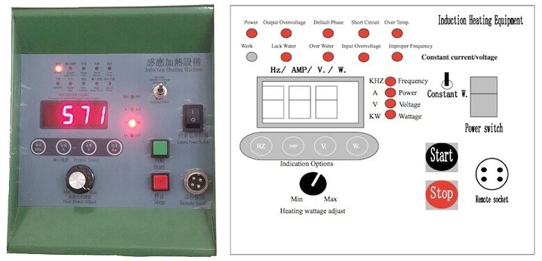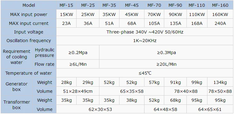 • Wide frequency range from 1KHZ to 20KHZ, working frequency can be designed by changing the coil compensating capacitor according to the melting material, quantity, stirring effect desire, working noise, melting efficiency other factors.