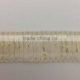 Beige Glitter Gold Lurex Braid Cotton Brush Fringe Trim