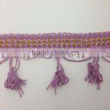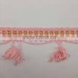 Gold Braid Pink Brush Fringe Tassel for Curtain Decoration