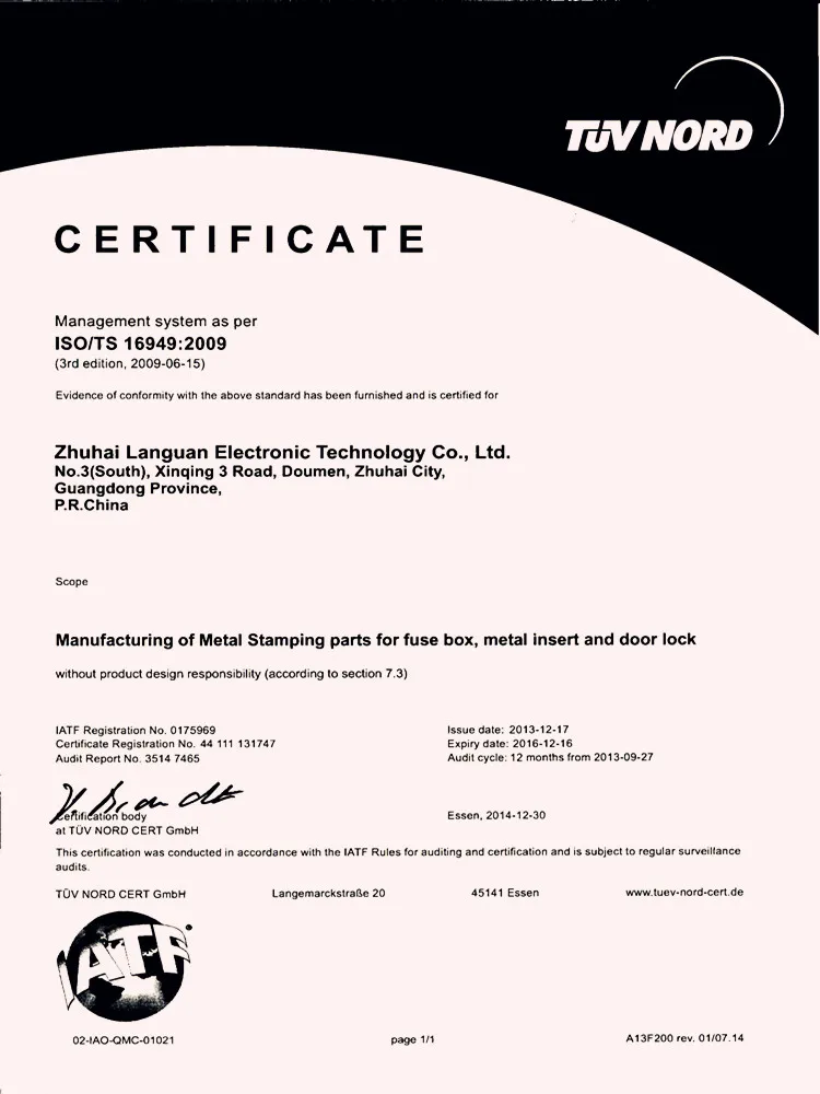 So far, we have many advanced production and test machines ensure the large production capacity of satisfactory products. Meanwhile, to improve the company management and the quality of products, Languan strictly implement the ISO 9 0 0 1 & TS 1 6 9 4 9 quality system, ISO 1 4 0 0 1 environment system; and these have promoted the products’ steady development in international market.
